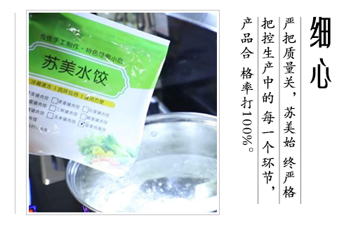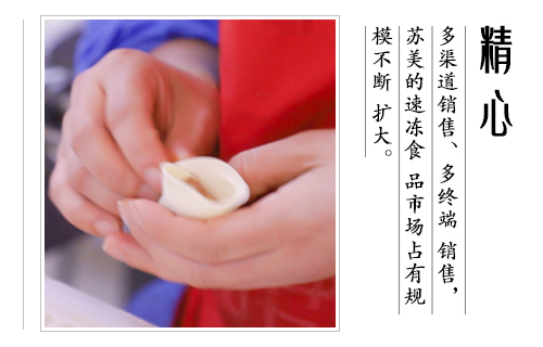 公司產品涵蓋速凍水餃(含手工水餃和大餡水餃)、速凍餛飩、速凍湯圓等三個系列、30多個花色品種,主要產品在華東、華西、華北的市場占有率達18%以上,其中蘇美的芹菜豬肉水餃、韭菜雞蛋水餃以其獨特的口感,大受消費者好評,成為了新晉的網(wǎng)紅美食.